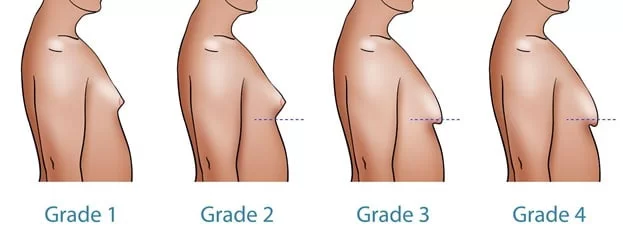 هناك العديد من درجات التثدي عند الرجال، ويمكن تقسيمها إلى أربعة انواع وهي كالتالي: